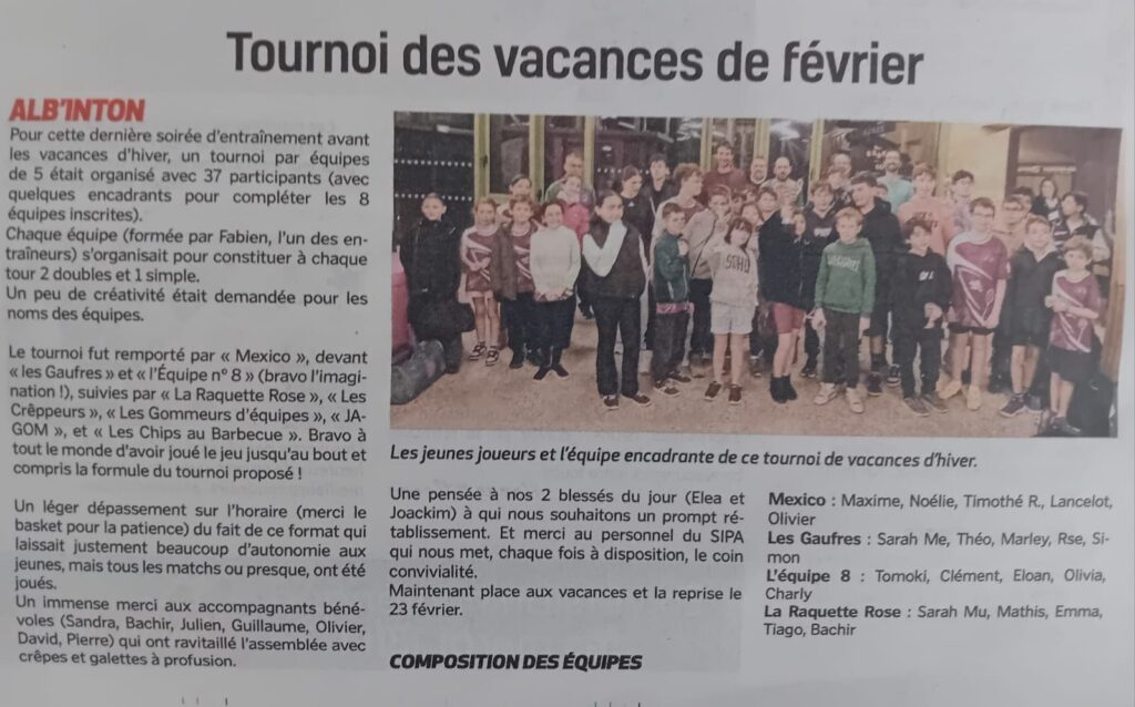 Implication bénévole en tournoi: vitale pour notre association de badminton. Rejoignez-nous, faites la différence!